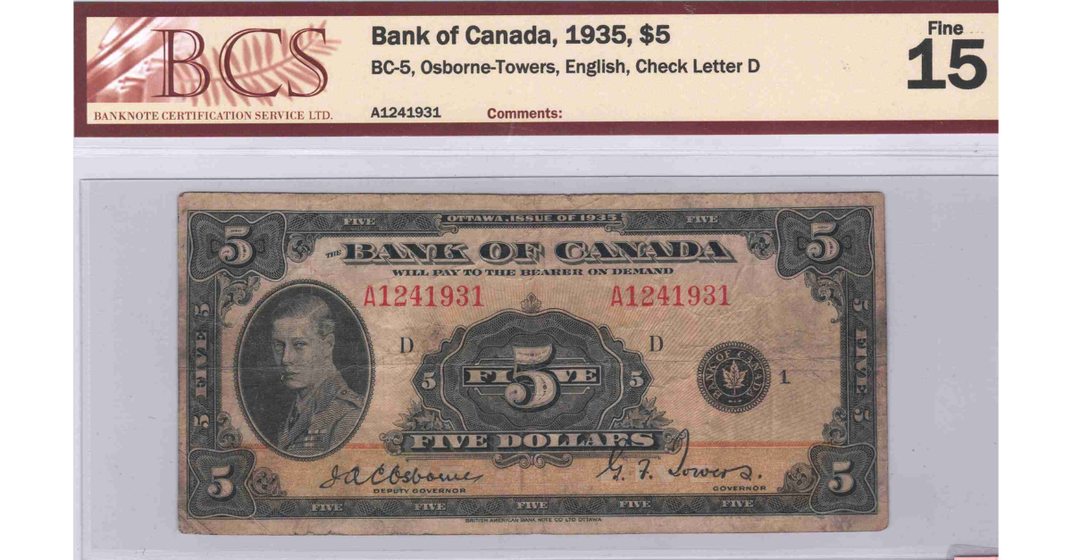 If you are looking to purchase authentic 1935 Bank of Canada notes, B&W Coins is a trusted source for collectors and investors. Each note is verified for authenticity, condition, and historical significance. Notable examples include: