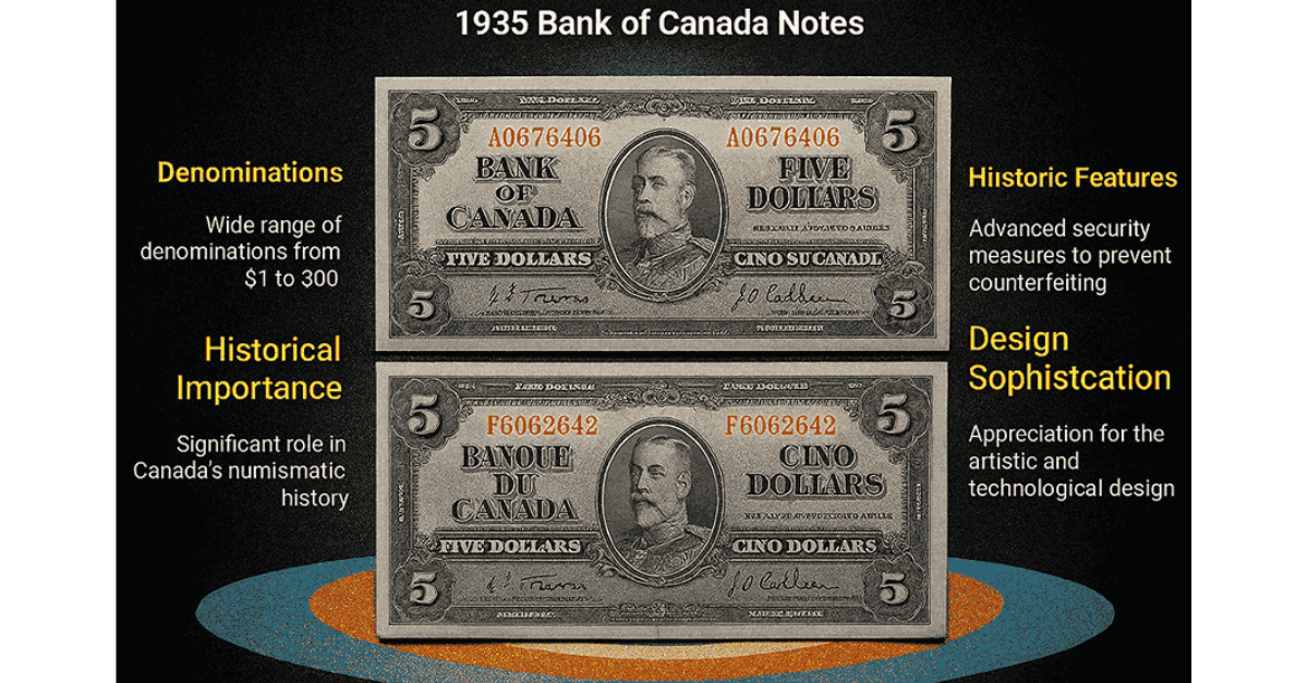 The 1935 Bank of Canada Notes are a historic event in the history of Canadian money, with an element of art, security and national identity. They are rare and carry a cultural meaning making them very collectible and of great value to investors.