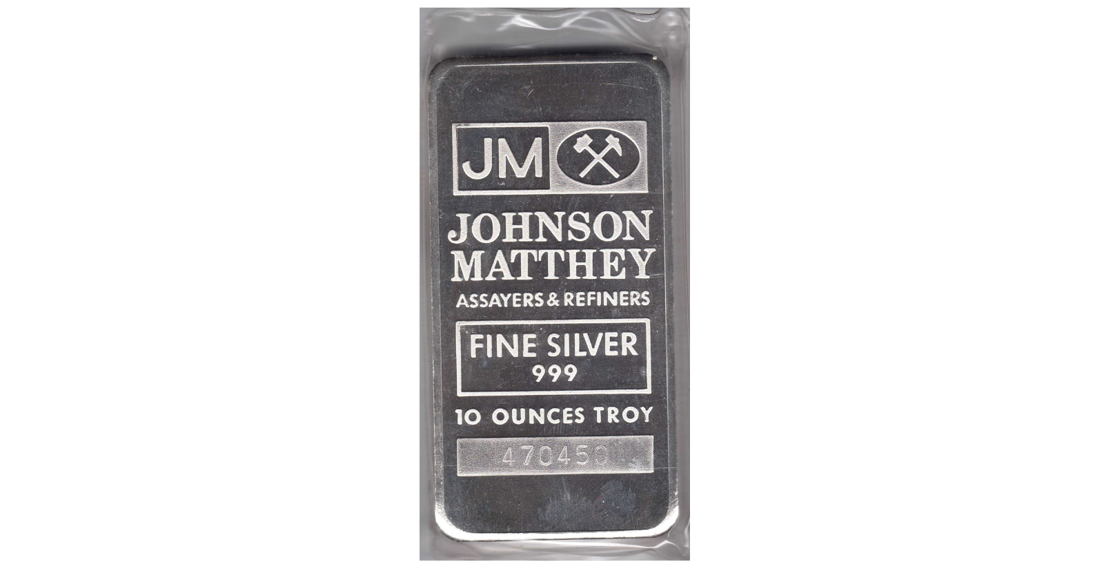 The 10 oz bar is the format most associated with Johnson Matthey’s institutional production era. At ten ounces, hallmarks and purity stamps appear at a clear, readable scale. Fewer of these appear on the secondary market at any given time compared to the 1 oz size, which drives proportionally stronger premiums. A well-preserved example with sharp hallmarks is one of the more sought-after pieces in vintage North American refinery silver.