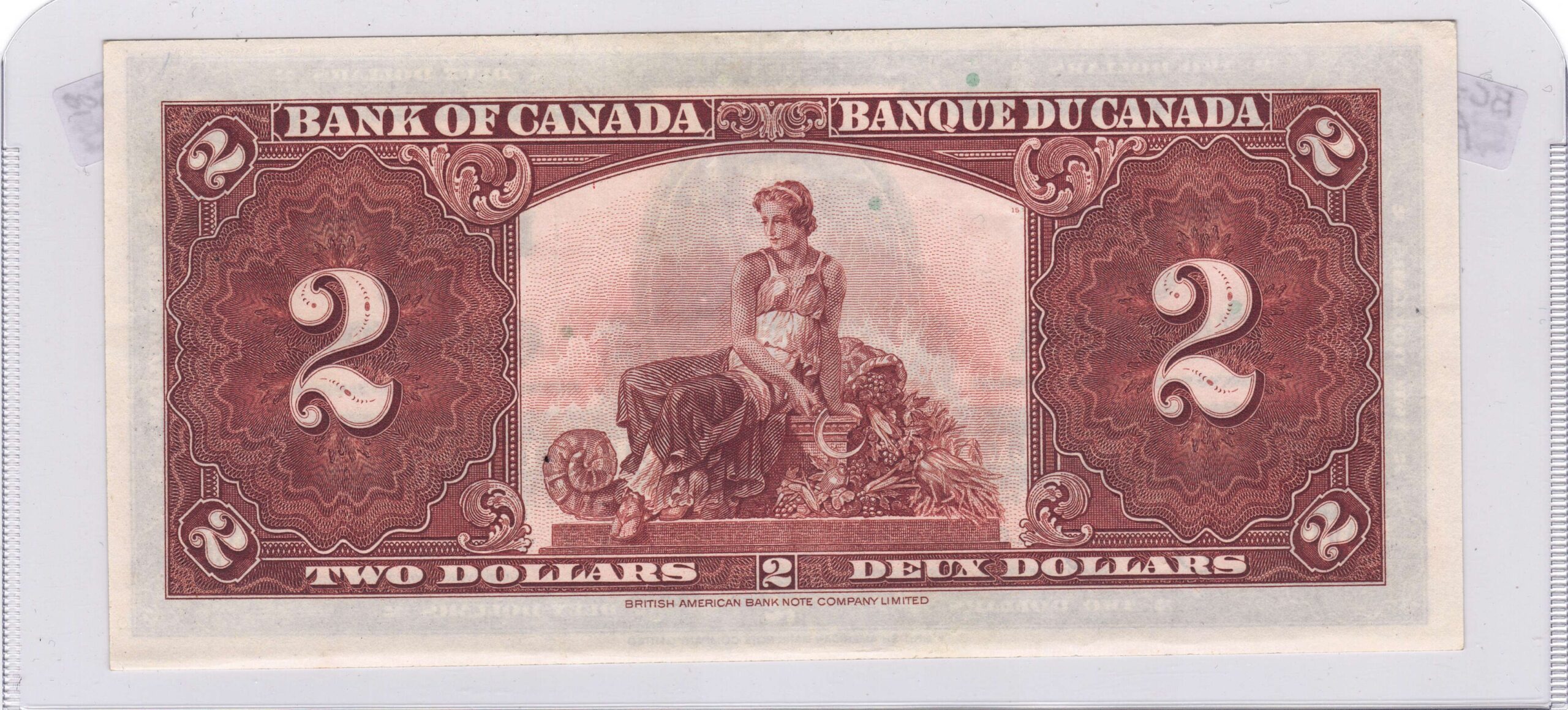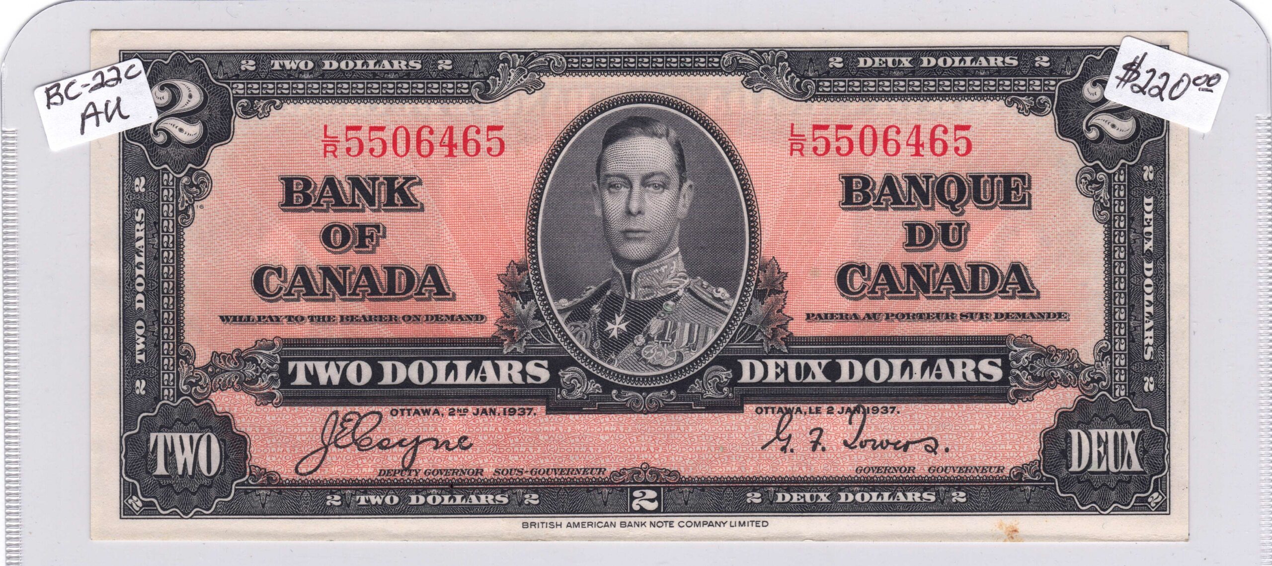 1937 Bank of Canada $2 Note – BC-22c – Grade: About Uncirculated (AU)