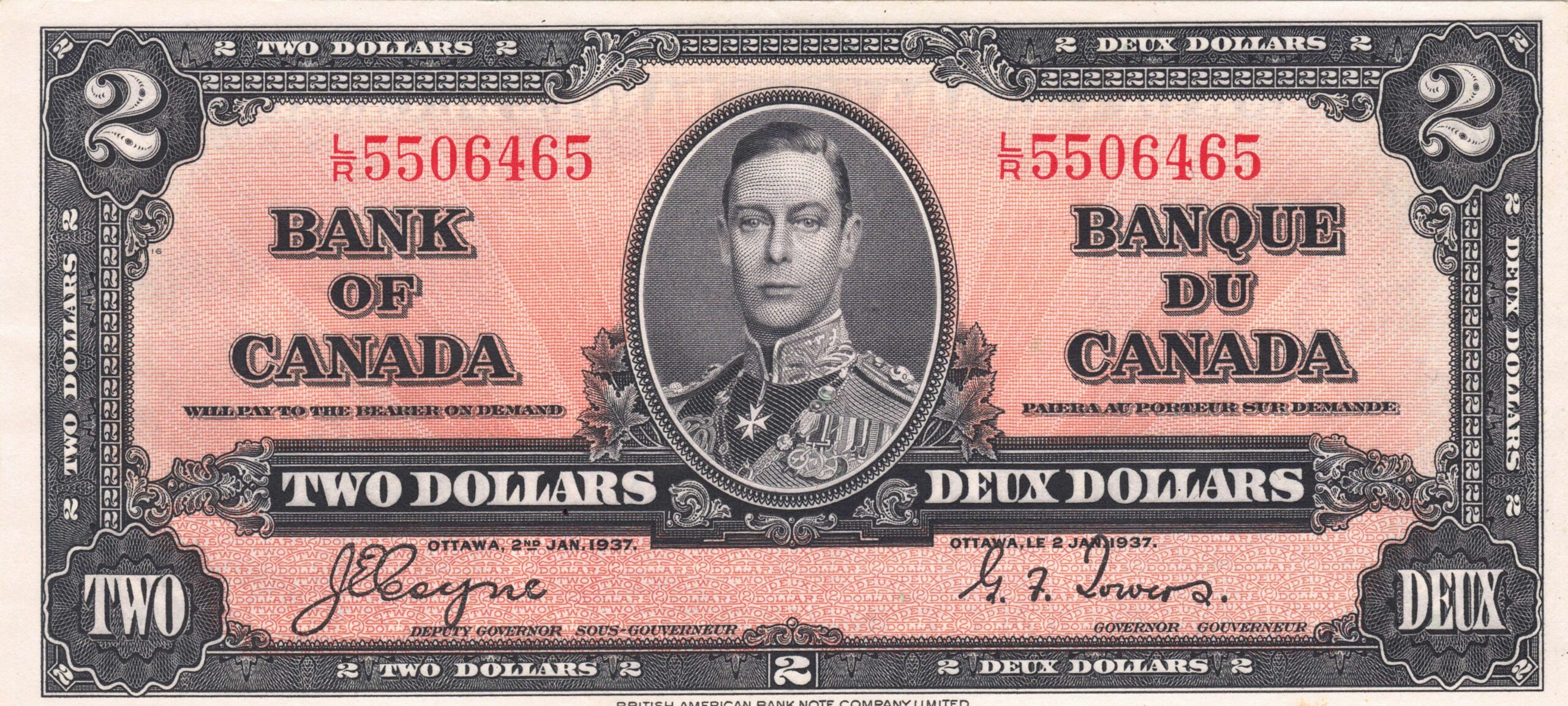 1937 Bank of Canada $2 BC-22C Au banknote!!!