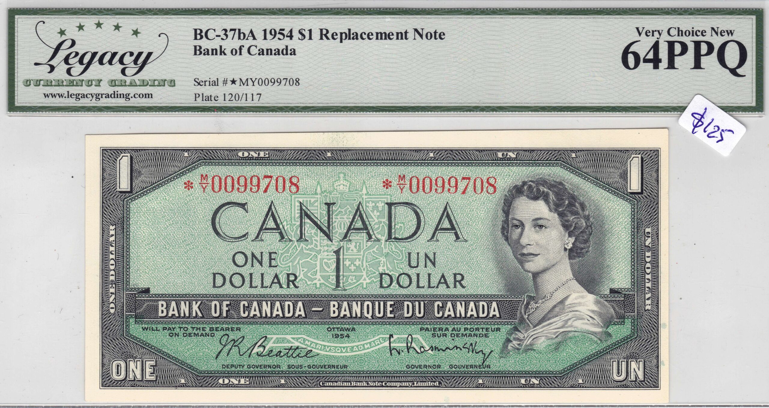 1954 Bank of Canada $1 Replacement Note – Legacy Grading 64 PPQ